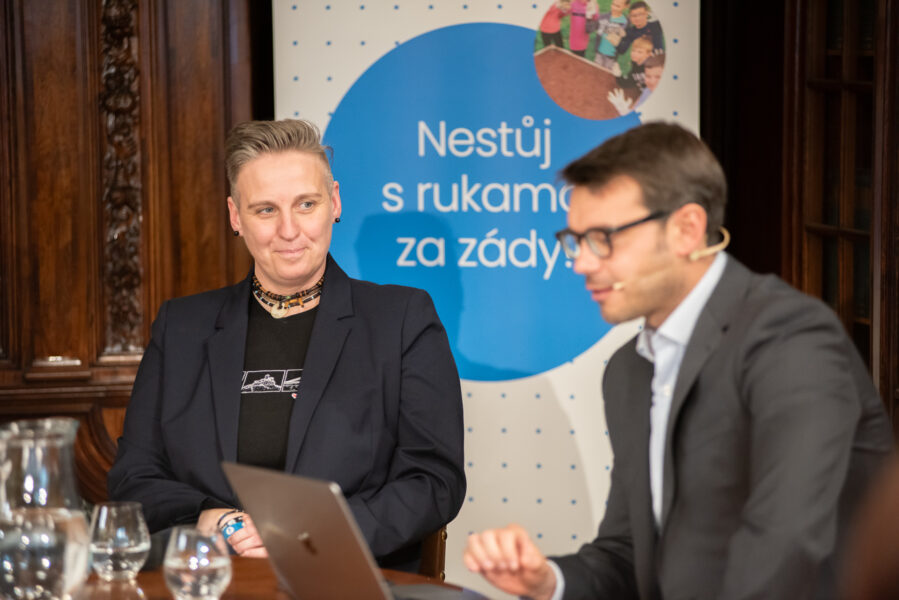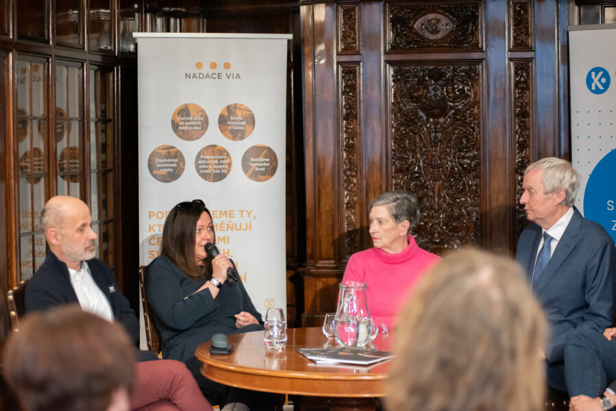 Setkání, které moderoval Michael Rozsypal, se v první části věnovalo důležitosti regionální filantropie. O významu spolupráce místních firem a spolků debatovali Valdemar Grešík, majitel firmy Natura, a Jitka Tůmová ze spolku Pod Studencem. O své filantropické zkušenosti se podělili také ústečtí filantropové, manželé Ryšaví.