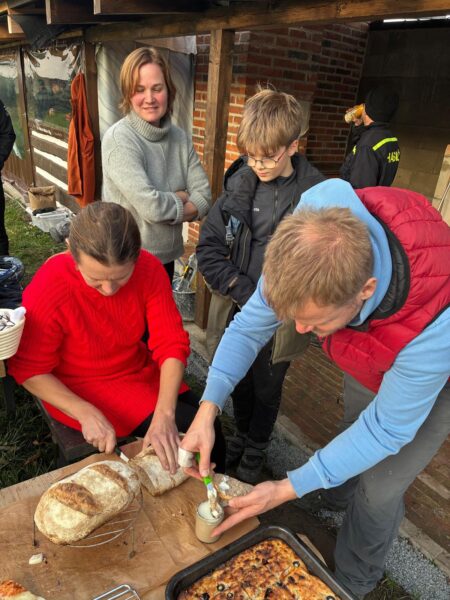 Brázdimští pec prvně roztopili teprve v listopadu loňského roku. „Příjemně nás překvapilo, jakou zvědavost první pečení vzbudilo. Úplně neplánovaně se nám sešla spousta různých druhů pečiva – různé druhy chleba, pizza, focaccia, placky a buchty. Nervozita spadla, když jsme vytáhli první upečené chleby. Jakmile se děti začaly přetahovat o čerstvě upečené buchty, bylo jasné, že to celé mělo smysl. Nakonec jsme dali péct maso a o něj jsme se zase porvali s klukama,“ směje se Josef Krotký.